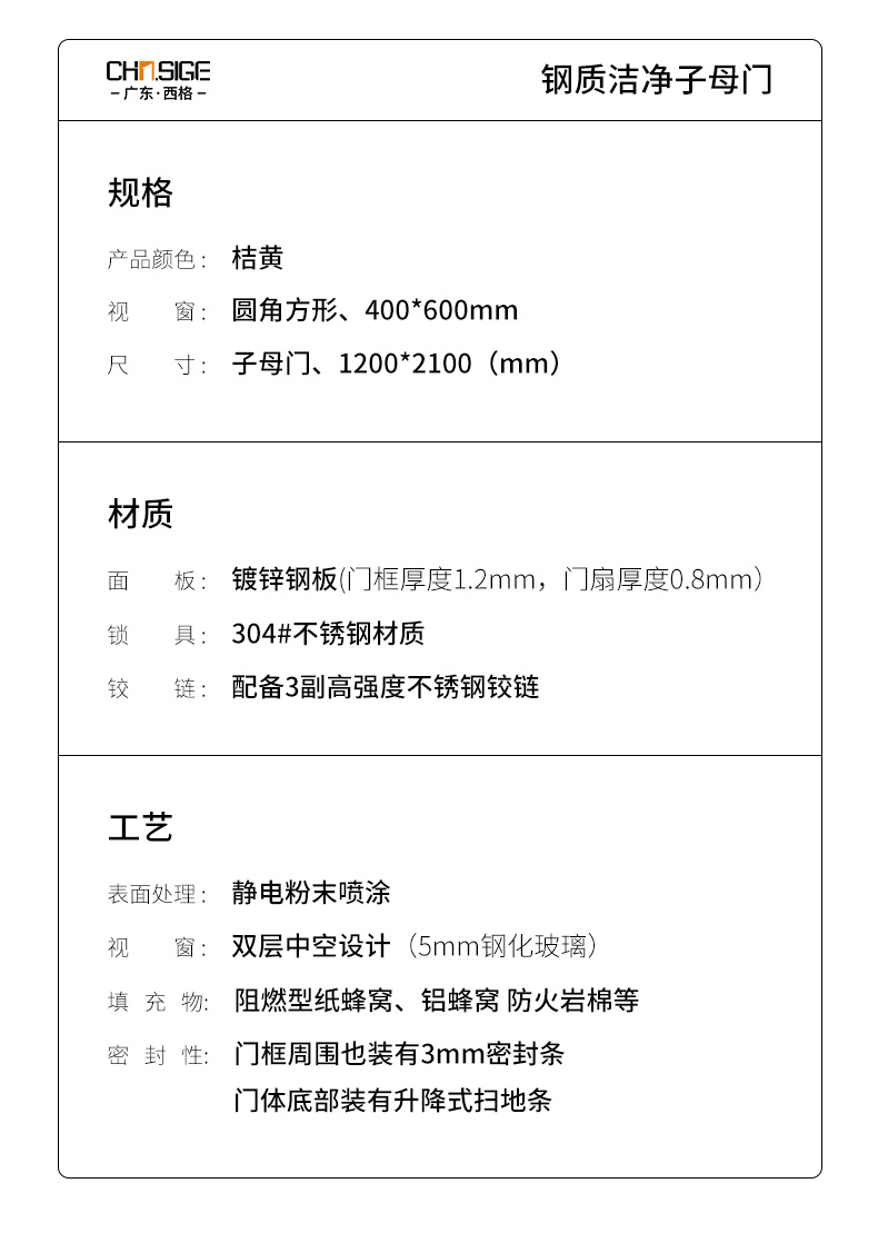 產品簡介:廣東西格大型潔凈門生產廠家