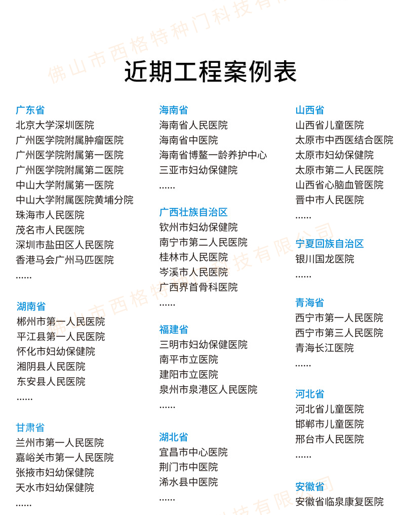 產品簡介:chnsige西格特種門,專業生產醫院門,醫院診室門,醫院辦公室門,醫院衛生間門,木質醫院門,鋼質醫院門,多鐘款式、顏色,尺寸可定制。